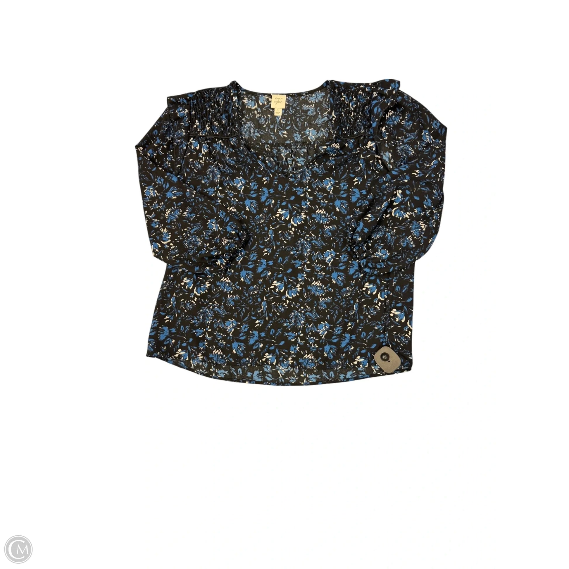 Blouse 3/4 Sleeve By Clothes Mentor In Black & Blue, Size: S