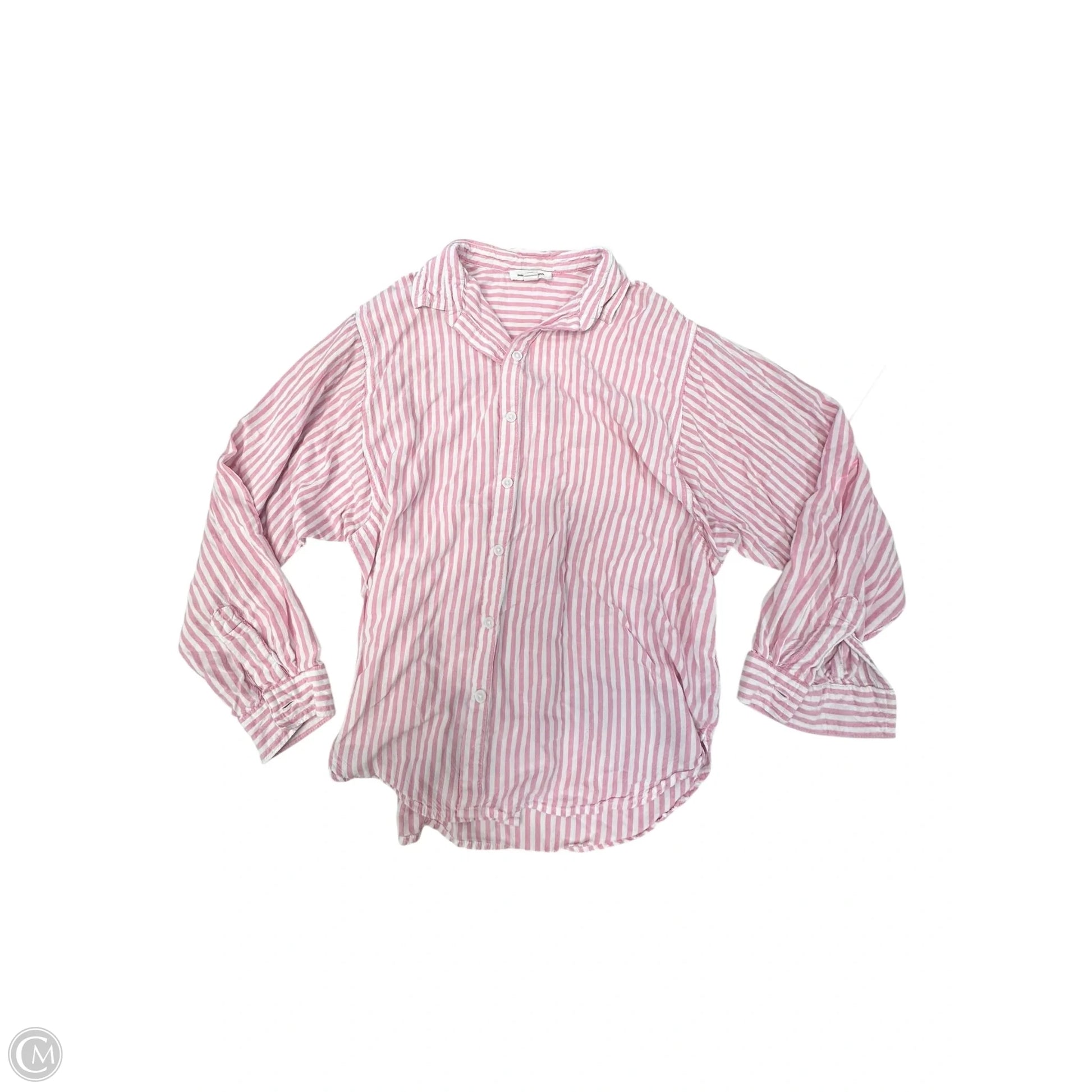 Blouse Long Sleeve By Beachlunchlounge In Pink & White, Size: M
