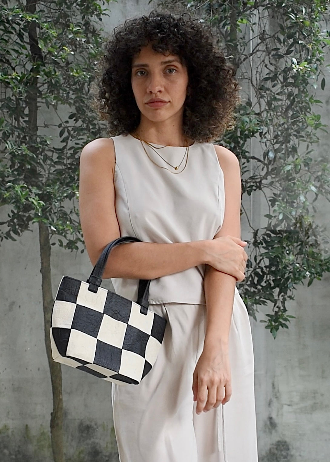 Mini Tote, Checkered Patchwork Black/Natural